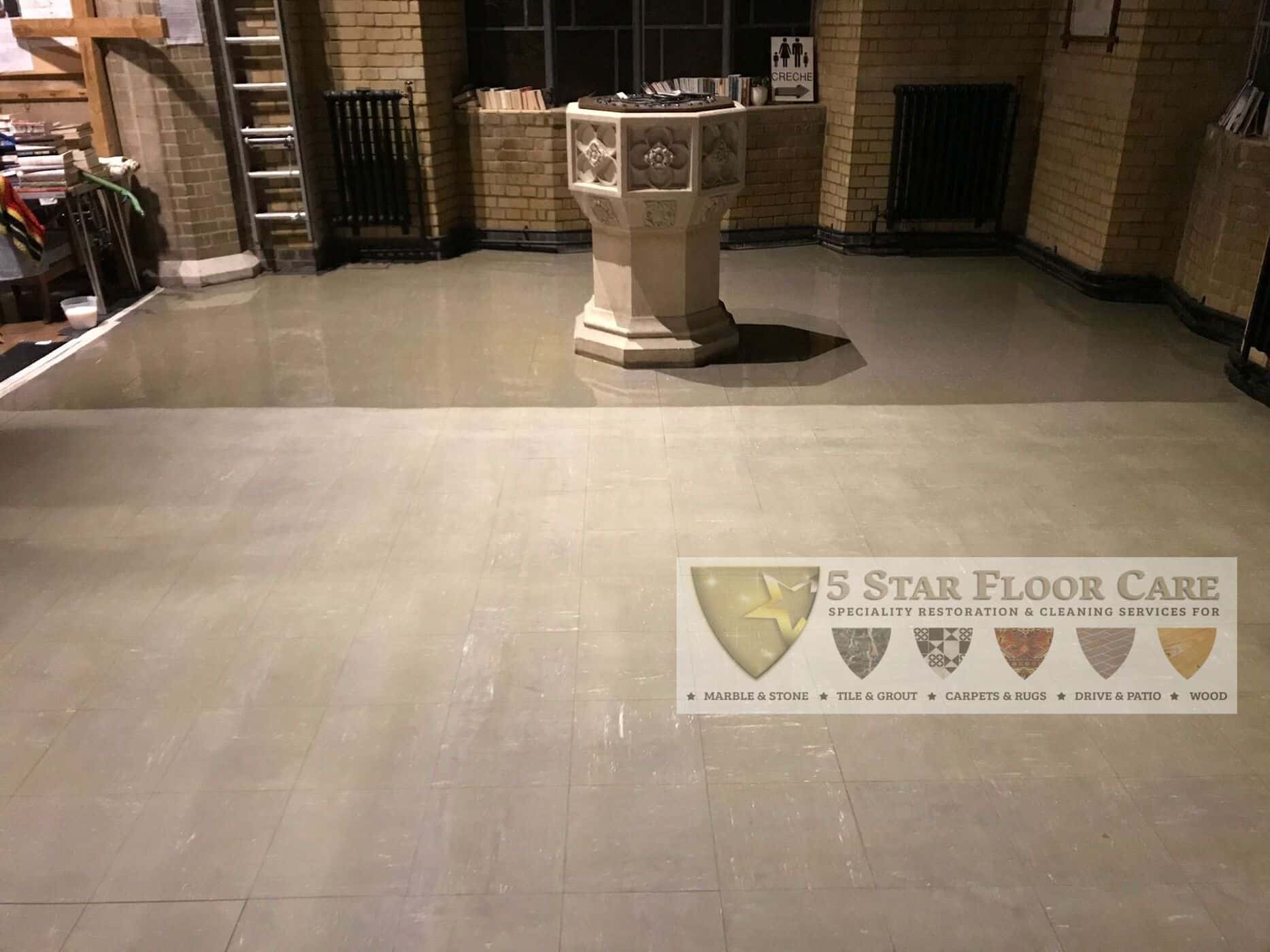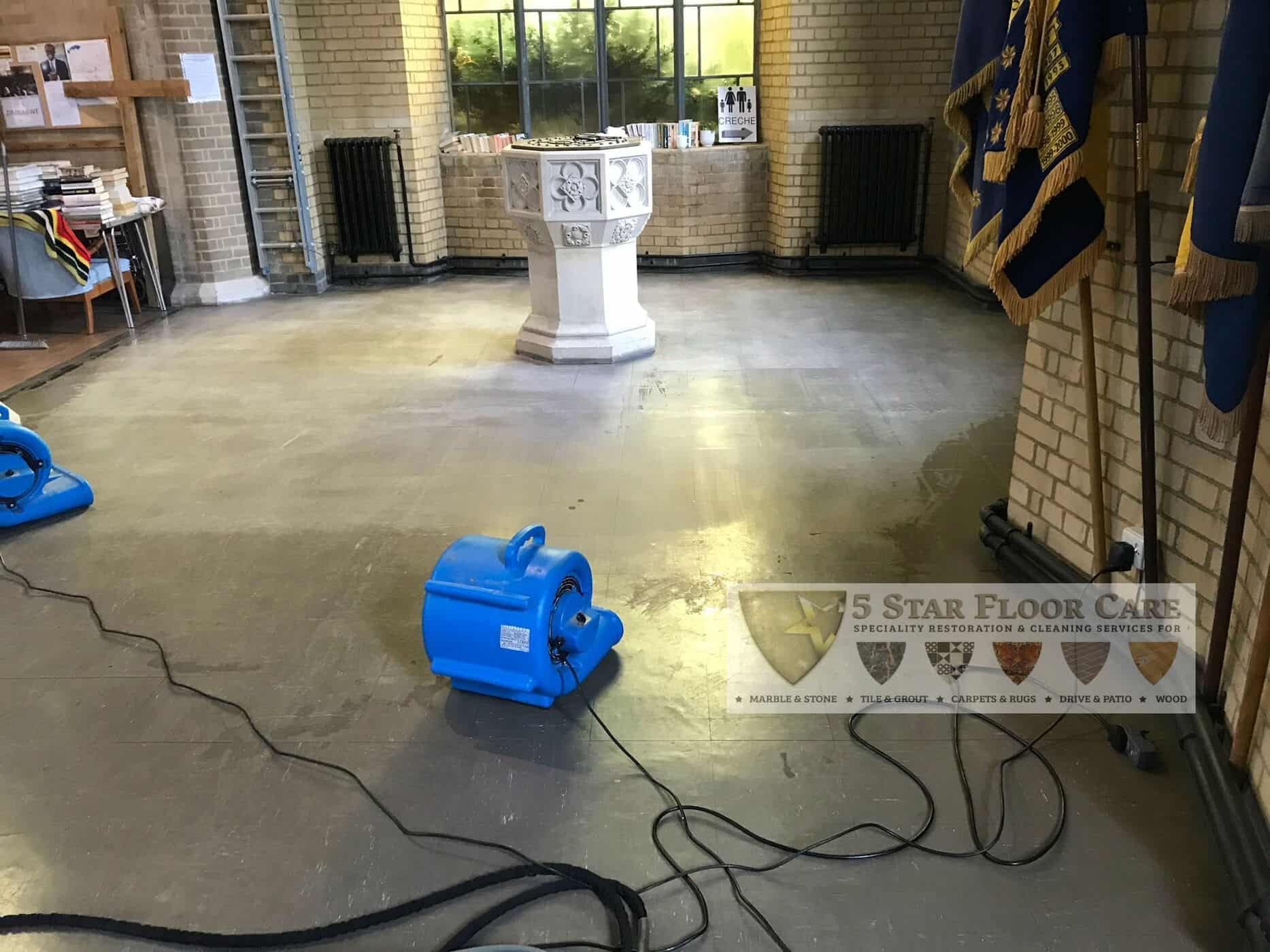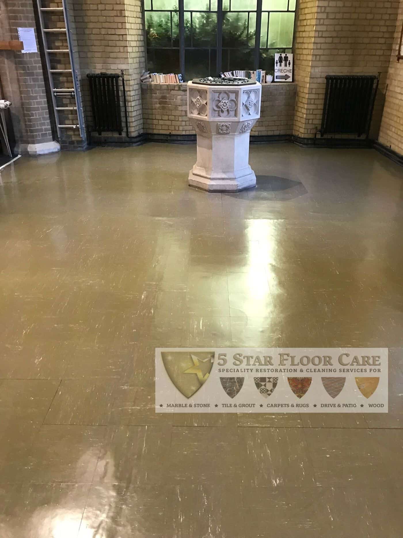 Commercial Vinyl floor cleaning in St Francis Church in West Wickham, Bromley.