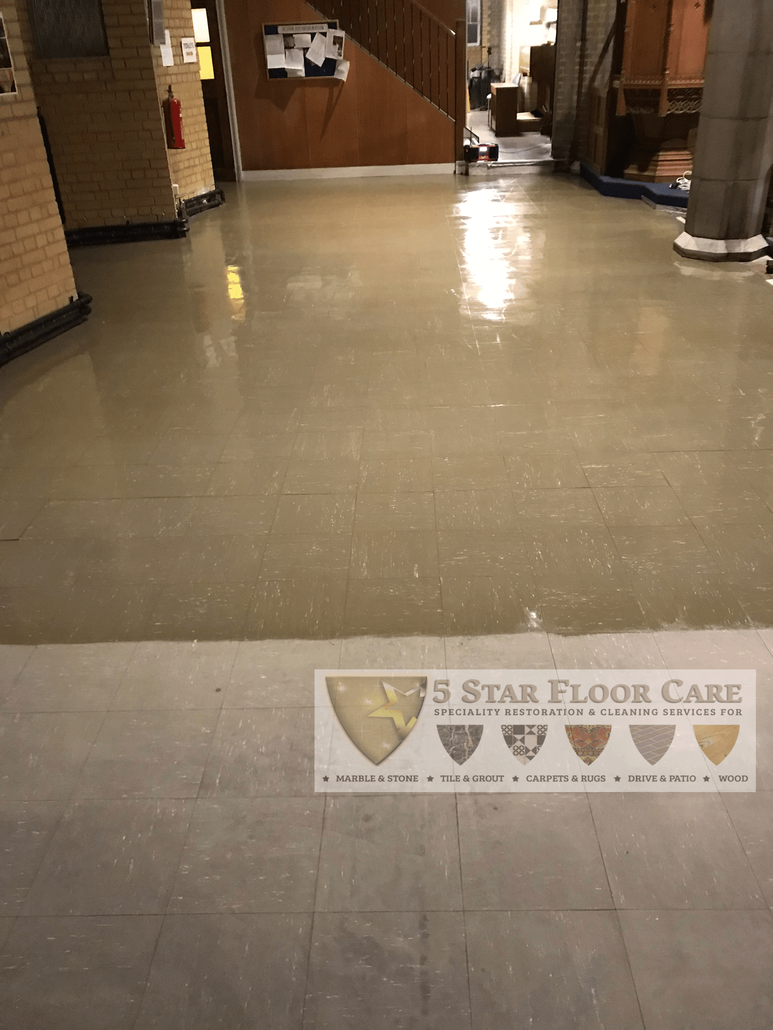 Our remit on this job was to strip, re-seal and polish the floor to restore it back to a respectable state!